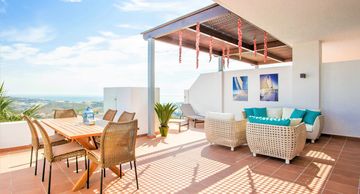 In Spain the outside living is more important than the inside one, and this is where our home really excels. As our apartment is a corner unit, we have more than 100 sqm terrace with several seating arrangements, loungers and a dining table for 6. What is better than a candle-lit al fresco dining while looking at the ever-changing sea?